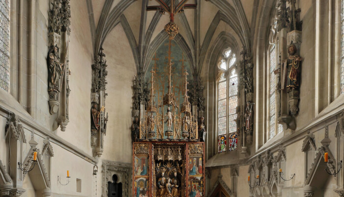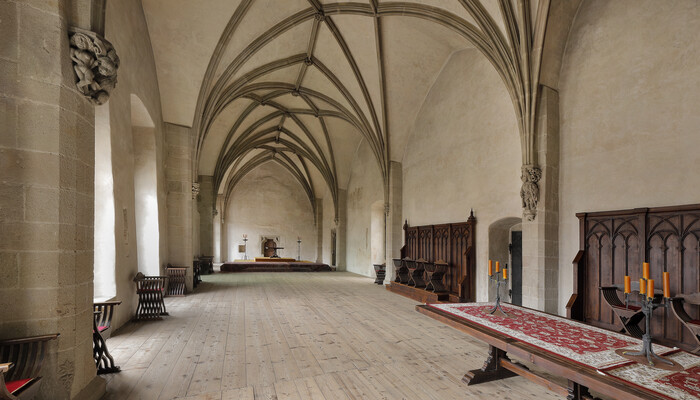 Second castle courtyard, silversmithery, August’s prison, prison, dungeon, chapel, small Knight’s Hall, great Knight’s Hall, library, picture gallery, Fürstenberg Museum, ramparts, Large Round Tower.